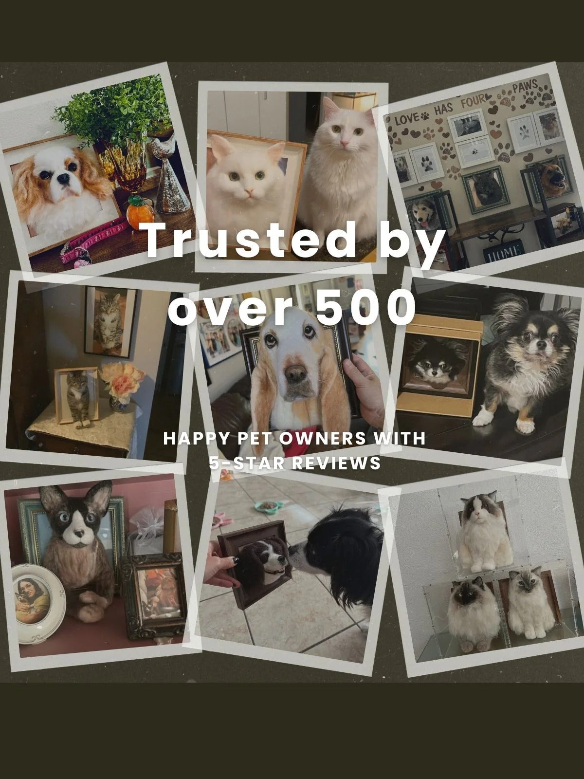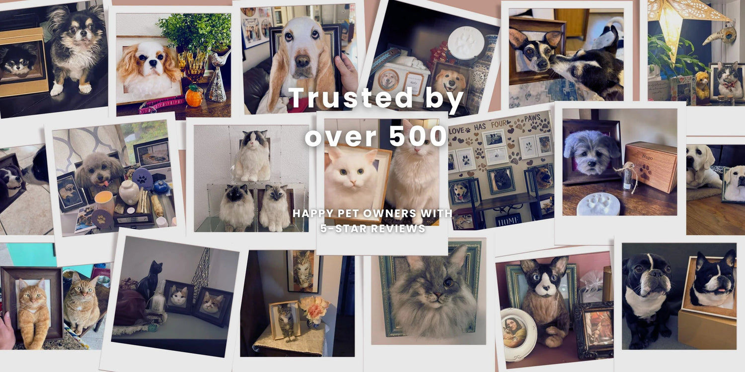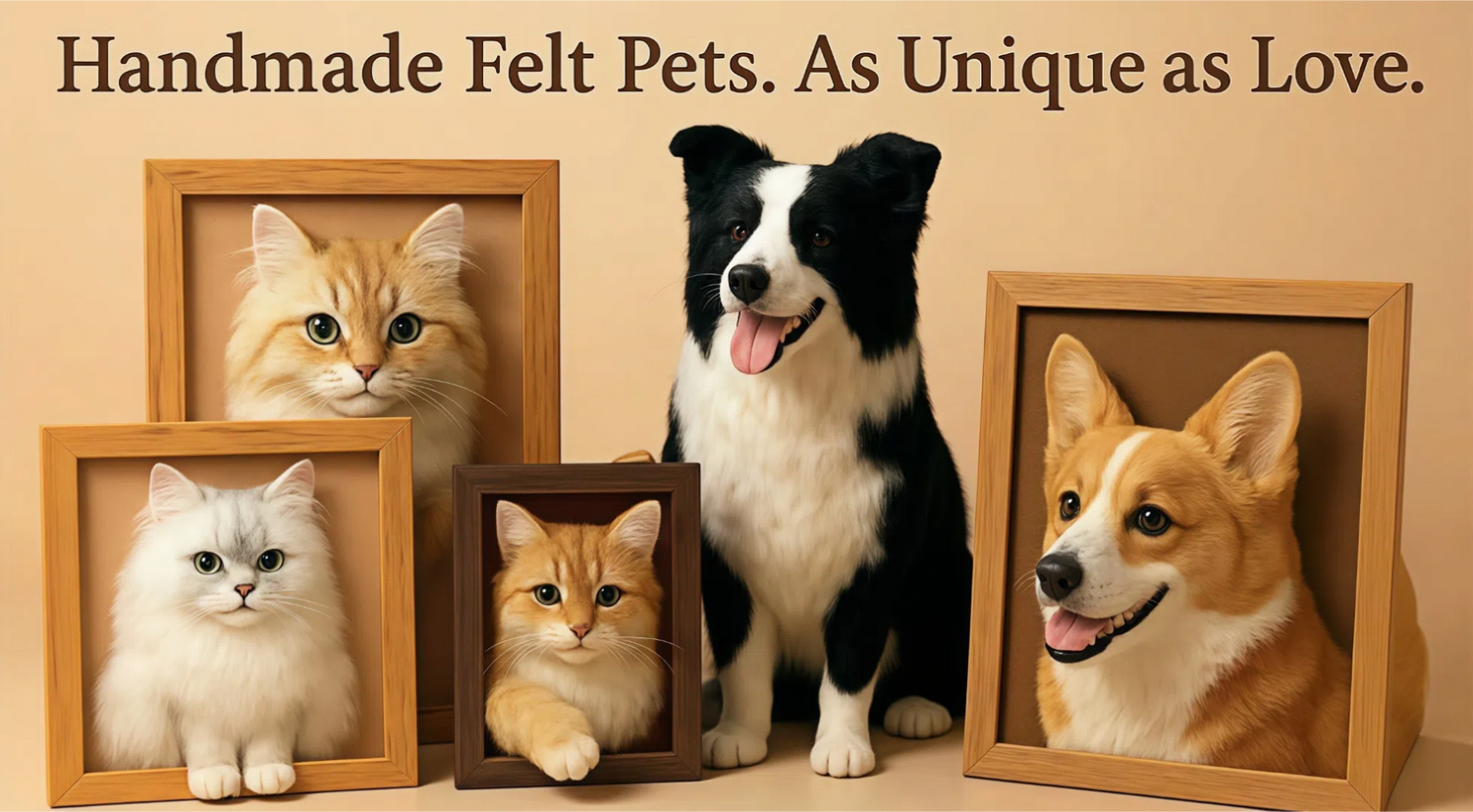 Each wool felt portrait is lovingly crafted by hand, using your pet’s photos and stories as our guide. Our skilled artists work one-on-one with you to capture every unique detail — from the sparkle in their eyes to the tilt of their ears. Every piece takes 1–2 weeks to complete, ensuring the care and attention your beloved companion deserves. This is more than art — it’s a heartfelt keepsake made just for you.